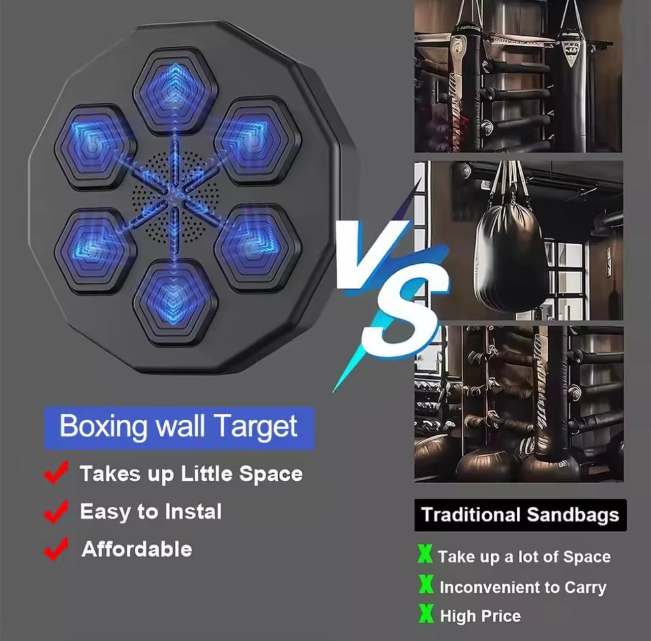 Découvre notre Boxing Wall Target, une cible murale interactive, équipée de capteurs intelligents, Bluetooth, lumières LED RGB, et haut-parleur intégré. Connecte ton smartphone, choisis ta musique préférée, et commence à boxer au rythme des lumières !